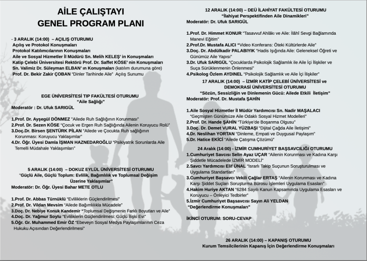 Dr. Öğr. Üyesi Bahar Mete’nin moderatörlüğünü üstlendiği, Prof. Dr. Abbas Türnüklü, Prof. Dr. Vildan Mevsim, Doç. Dr. Nebiye Konuk Kandemir, Doç. Dr. Yağmur Soylu ve Öğr. Gör. Muhammed Emir Öz’ün konuşmacı olarak yer aldığı oturumda; aile kurumunun önemi bilimsel perspektifle değerlendirildi.